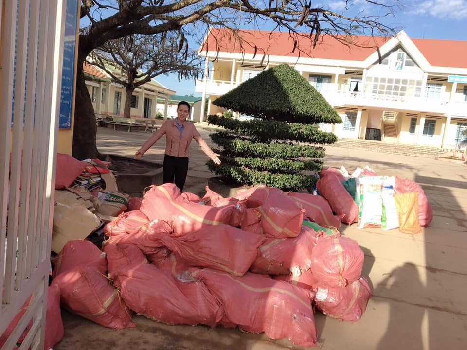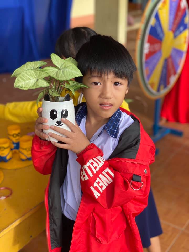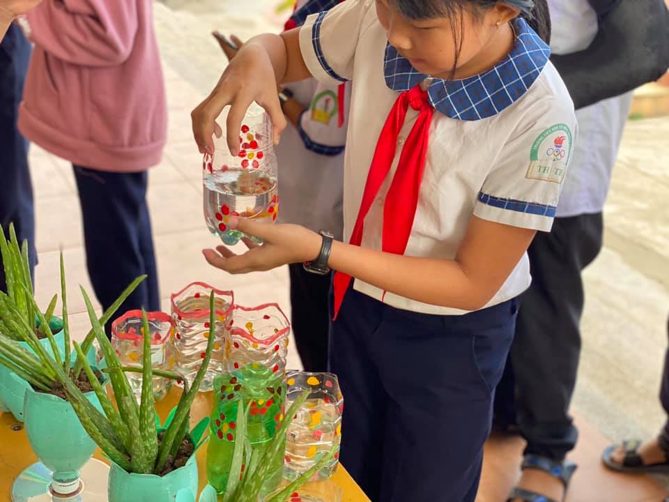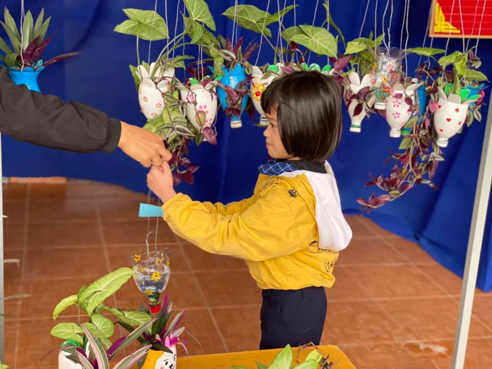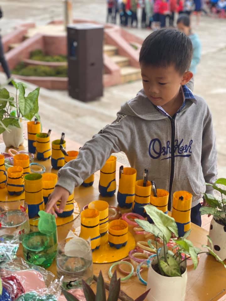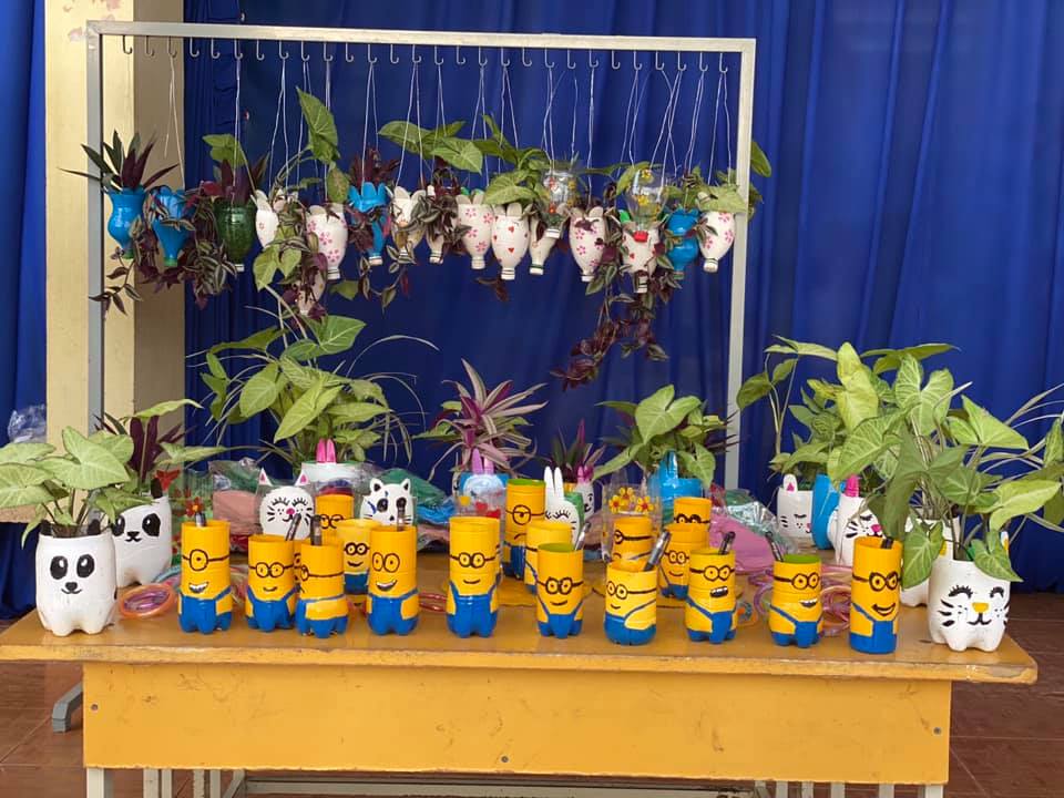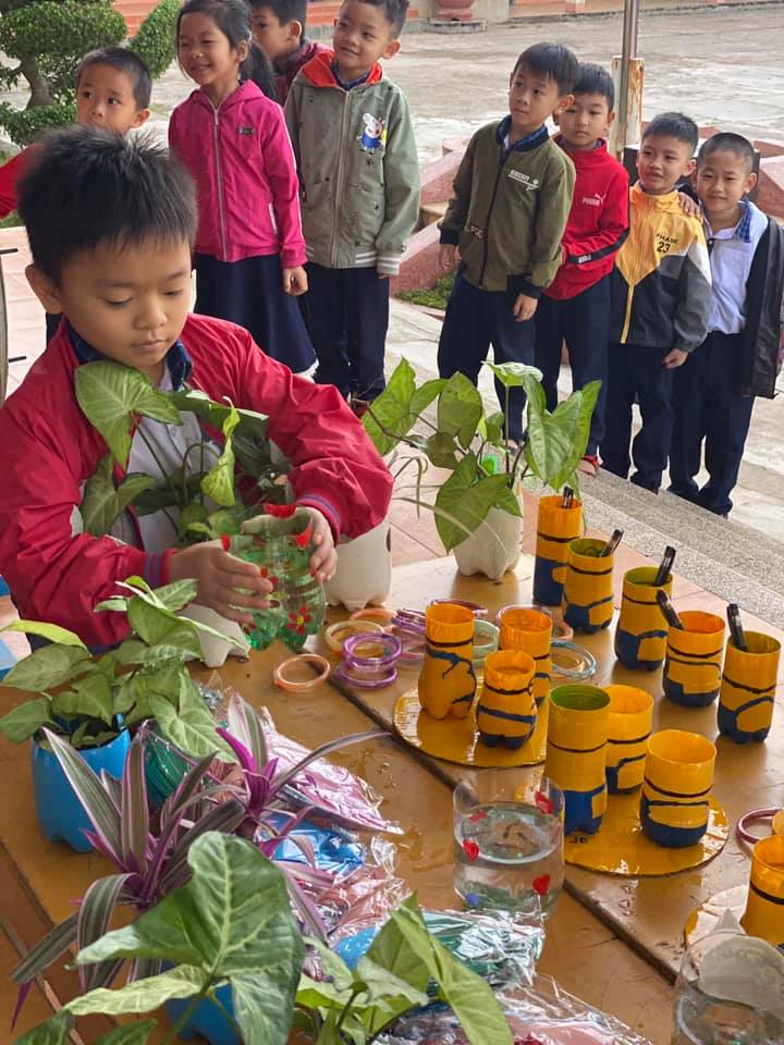 Theo đó, tại chương trình, các em học sinh đã chuẩn bị cho mình một số giấy vụn, thải nhựa, lon bia để đổi lấy phiếu quay vòng quay kỳ diệu nhận phần quà như: bình đựng cá, chậu cây cảnh, vòng tay, hộp đựng bút… Từ các sản phẩm tái chế do Đoàn thanh niên và học sinh nhà trường chuẩn bị , việc làm này làm cho các em rất thích thú và tích cực tham gia, và hưởng ứng. Kết quả đã có gần 200 phần quà được trao đến các em học sinh.