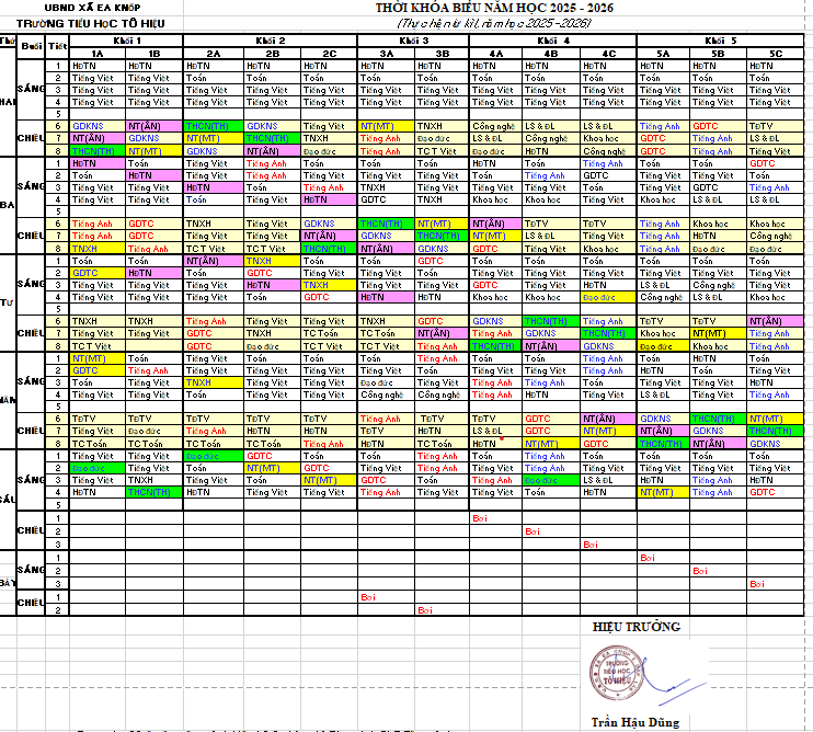 THỜI KHÓA BIỂU NĂM HỌC 2025-2026